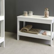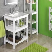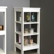 Umyvadlové skříňky v šířkách 62, 72 a 82 cm jsou doplněny koupelnovými regály ve třech velikostech. Vysoký a nízký se čtvercovou základnou a nízký s obdélníkovou základnou. Regály lze postavit kdekoli v koupelně, ale i jiných místnostech.