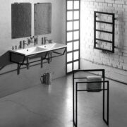 Součástí série SKA nejsou jen pevné konstrukce pod umyvadla či desky ale i stojany a držáky na ručníky, nástěnné police, vše z prvotřídní oceli, lakované práškovou barvou. Standardně dodáváme konstrukce v bílé nebo černé barvě, v matném provedení. Za příplatek 40% lze vyrobit v jakémkoli odstínu RAL.
