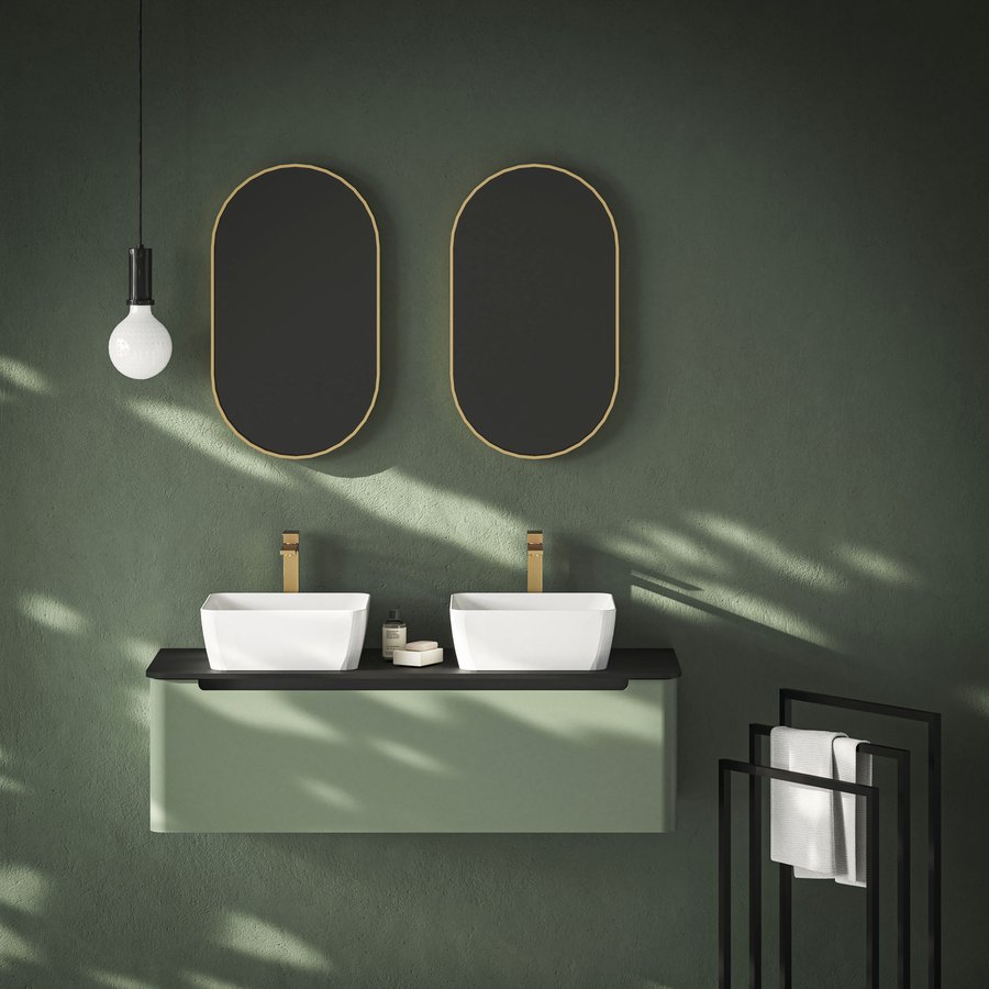Lakovaná série nábytku KERALA pro umyvadla na postavení v moderních matných barvách se vyznačuje výrazným designovým prvkem – zaoblenými boky a čelem zásuvky. Skříňky jsou jednozásuvkové, bezúchytkové a s plynulým dovíráním. V nabídce jsou 2 typy desek o tl.12 mm: bílá matná Rockstone a černá matná kompaktní deska PREMIO z vysokotlakého laminátu. Umyvadlo na desku lze libovolně umístit po celé šířce skříňky. Umyvadlové skříňky nabízíme v šířkách 80, 100, 120 a 140 cm a lze je doplnit o vysokou dvířkovou skříňku ve stejném oblém designu.
