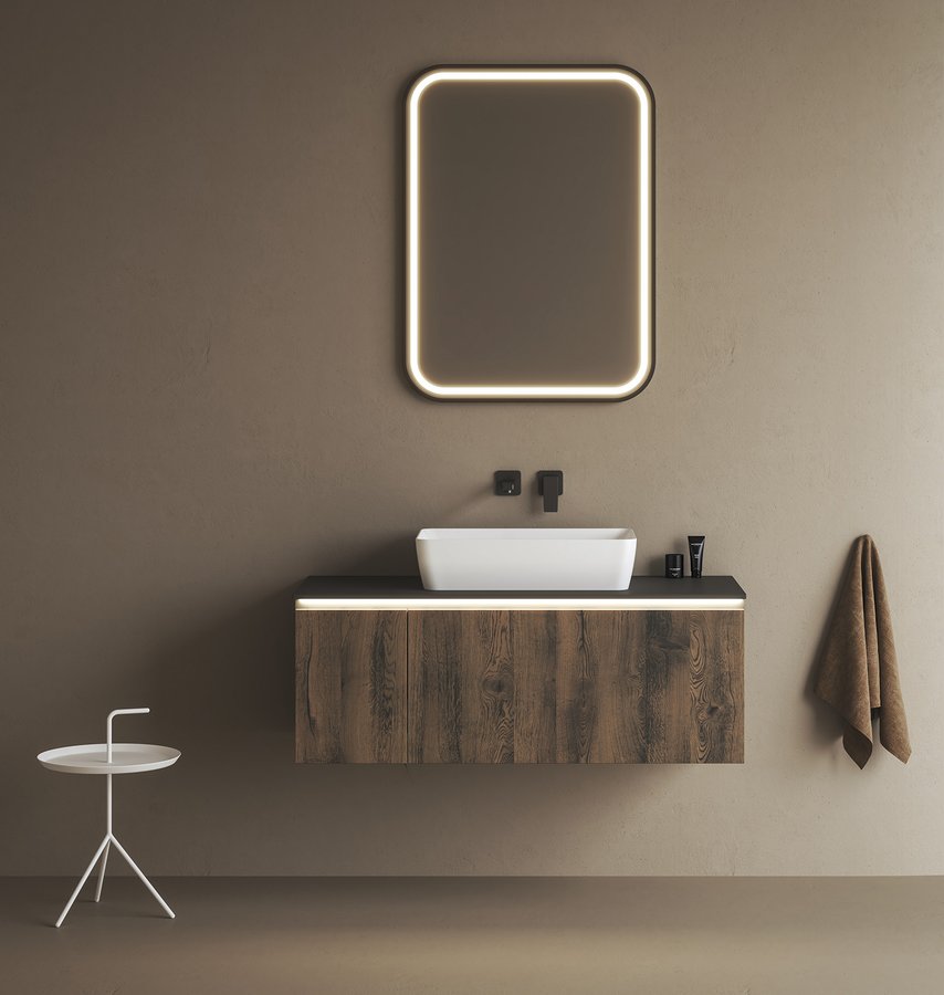 Umyvadlové skříňky jsou k dispozici v šířkách 60, 75, 90 a 125 cm a lze je doplnit celou řadou bočních skříněk a zrcadel v obdobném designu.